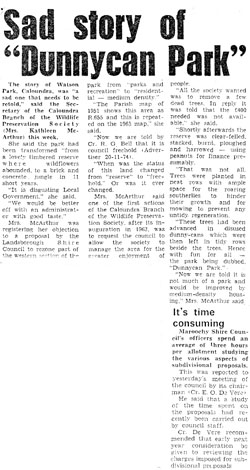 The story of Watson Park, Caloundra was ‘a sad one that needs to be retold’, said the Secretary of the Caloundra Branch of the Wildlife Preservation Society (Mrs. Kathleen McArthur) this week.